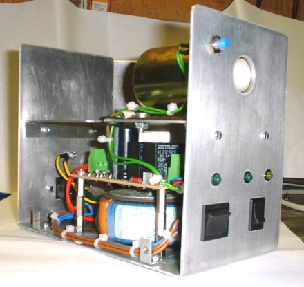 Der allseits geliebten mechanischen Ausbildung ein Gesicht gegeben: nach Anreissen, Schneiden, Bohren, Feilen und Kanten sollten diese Alubleche einen Sinn erfüllen. So wurde aus ein bisschen Elektronik und einer grossen Spule aus irgendeinem Automaten eine Vorrichtung zum magnetisieren (Gleichstrom durch die Spule) bzw. entmagnetisieren (50Hz-Wechselstrom) von Schraubendrehern und ähnlichen Gegenständen.